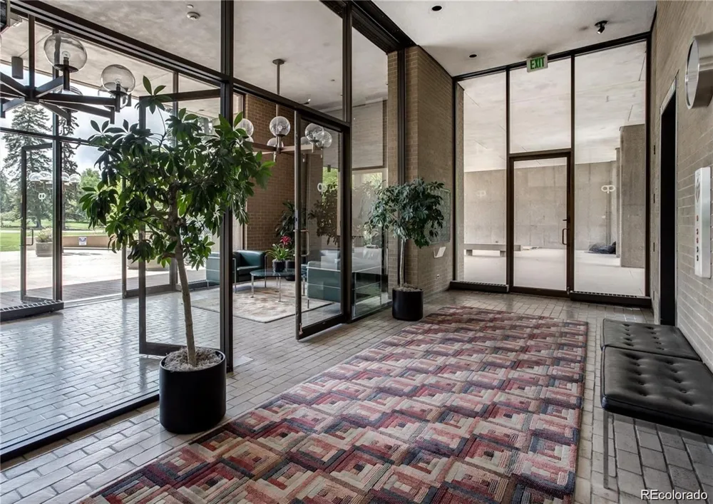 Chic urban design is evident in this fully remodeled residence overlooking Cheesman Park, in Denver's iconic One Cheesman Place, designed by renowned architect Charles Sink. This luxury building, completed in 1969 is celebrated for it's innovative design and enduring elegance. Charles Sink's design philosophy is evident in the building’s clean lines and expansive floor-to-ceiling glass windows and large balconies offering unsurpassed views of Cheesman Park. The expansive living/dining area offers unlimited possibilities for entertaining and daily living with plenty of room for multiple seating areas. The newer kitchen is open to the living and dining area and includes a built-in refrigerator, double ovens, a rare gas cooktop and beverage refrigerator. The luxurious primary suite includes a comfortable bedroom plus a "spa" style 5-piece bath with separate tub and shower and dual vanity plus make-up counter and custom closet built-ins. A second bedroom works equally well as a den with a built-in murphy bed. Carefully curated, high end finishes include beautiful herringbone wood floors, quartz counters, designer selected fixtures and top-of-the-line appliances and custom built-ins. The full width terrace allows for seamless indoor/outdoor entertaining and offers a three-season living area to enjoy the views of historic Cheesman Park with it's 1.6 mile walking path loop. This residence includes one underground garage parking space and one storage space and additional parking for residents and guests is available at the entry level. One Cheesman Place offers an array of amenities including a seasonal swimming pool, fitness center, sauna, top floor club room, guest suites for resident's guest's use, staffed lobby and building security. Residents are committed to keeping this landmark building in top condition. Whole Foods and King Soopers are nearby along with many neighborhood restaurants and shops and Cherry Creek North and downtown Denver are minutes away!
