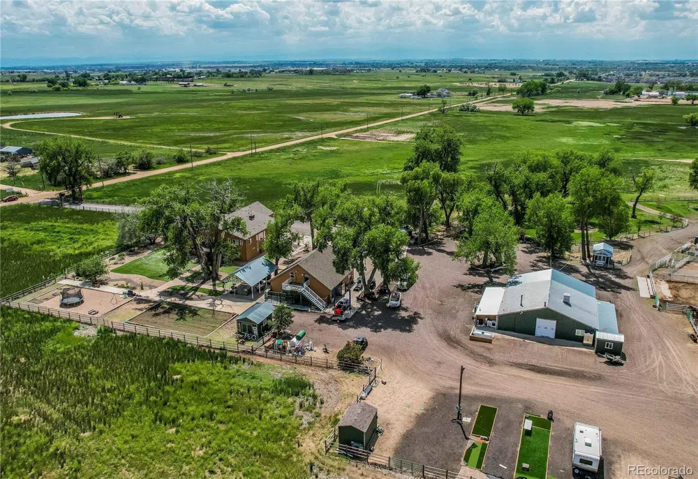 ALL 51+ ACRES INCLUDED in price adjustment! This is not just an amazing property it's a lifestyle! Just 33 minutes from Broncos Stadium this property includes endless possibilities including multi-generational living with several revenue stream options. Enjoy Equestrian lifestyle with an unbelievable event space, a currently operating oil well, livestock, sport activities, R.V. sites, and whatever you can imagine is on this 51.26 acre property. Additionally, you find fuel pumps, gardens that irrigate with weed barrier, a playground, and a multi use turf area. With three primary/master suites two on main floor both with walk out patio doors, and a third upstairs with a beautiful deck all including an en suite! This custom home is adorned with the finest of finishes from the tongue and groove ceilings, shiplap walls, and vaulted ceilings down to the real wood floors. The kitchen is an absolute show stopper complete with commercial refrigerator, downdraft range, and an unforgettable island attached to a 10x10 size pantry. This beautiful home has room for the whole family with an additional 3 bedrooms and 3 baths. Home boast scenic, unobstructed mountain views from almost all the rooms! The 5 car garage is fully loaded with lift and everything you could ever want in a garage. The barn next to the garage also has its own kitchen and bathroom with lots of space to work, play, or host. Lastly, in between the home and 5 car garage is an amazing water feature, hot tub and a large rotisserie BBQ. With so many stunning features, this is a property you have to see to believe!
