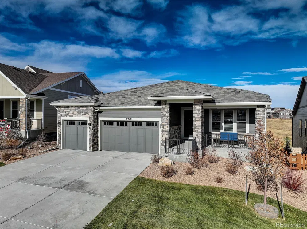 Gorgeous in every way, this is a beautifully appointed, exterior landscape maintenance free home with unparalleled upgrades. This unique neighborhood includes (with HOA) snow removal (2"or more, streets, drive and walks) mowing, yard, landscaping, and irrigation maintenance, front and back. Meticulously maintained, the main level offers hickory hardwood flooring throughout, a bright study/flex space with French doors and crown molding, a grand dining area with coffered ceilings and an atmosphere that rivals the finest of restaurants. A spectacular kitchen with quartz counters, high-end cabinets, a coffee bar with butlers pantry and stainless steel high-end appliances. The great room features cathedral ceilings, a focal point fireplace, and custom built ins. The primary bedroom is an oasis at home with tasteful, elegant decor, a five-piece bath and enormous walk-in closets with built-ins and organizers. The lower level is equally as impressive featuring a wet bar with quartz counters, high-end cabinets, a beverage cooler, dishwasher, an expansive entertainment area, large bright bedrooms with enormous closets, a second, custom crafted fireplace, a bonus room perfect for crafts/exercise area, or media room, and a beautiful full bath. Outside is open space to behold, with foothill views and wide open spaces. Amazing ambience from the covered porch up, or the stamped concrete retreat down, with custom grill and firepit areas including natural gas hookups. The 3 car garage is beautifully finished with large cabinets, and lots of storage. All of this in a home with high ceilings, upgraded flooring, high-end Hunter Douglas window coverings, crown molding, and a concrete tile roof. With a community feel, a fitness center, 2 pools, miles of trails, a community garden, parks, tennis courts, acres of open space, this neighborhood has it all. The designers spared no expense with the upgrades and finishes. This truly is a must-see, parade of homes style property.