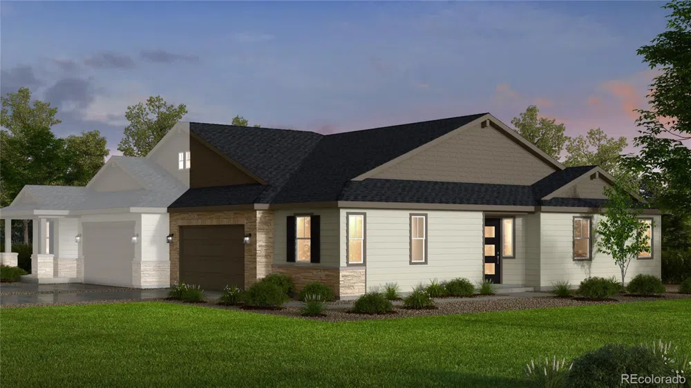 MLS# 3840842 Built by Taylor Morrison, Oct/Nov Completion! The Rocky Mountain in the Aurora Highlands – Landmark Community is a low-maintenance, single-level home design. Be sure to ask about Special Financing. This paired floor plan welcomes you through a spacious foyer leading into the kitchen, great room, and dining area, offering plenty of space for entertaining loved ones. Conveniently planned, a laundry with optimal space, and 1 additional bedroom and full bath are located towards the front of the home. When you’re ready to relax, the secluded primary suite provides a spacious room for peace and quiet with a 4-piece primary bath and large walk-in closet. Utilize the full unfinished basement for future renovations or extra storage space. Design upgrades feature flooring, kitchen cabinet crown molding and much more. Structural options include: outdoor living, 13 seer AC, 9’ unfinished basement with rough-in plumbing, utility sink rough in and built-in kitchen appliance package.