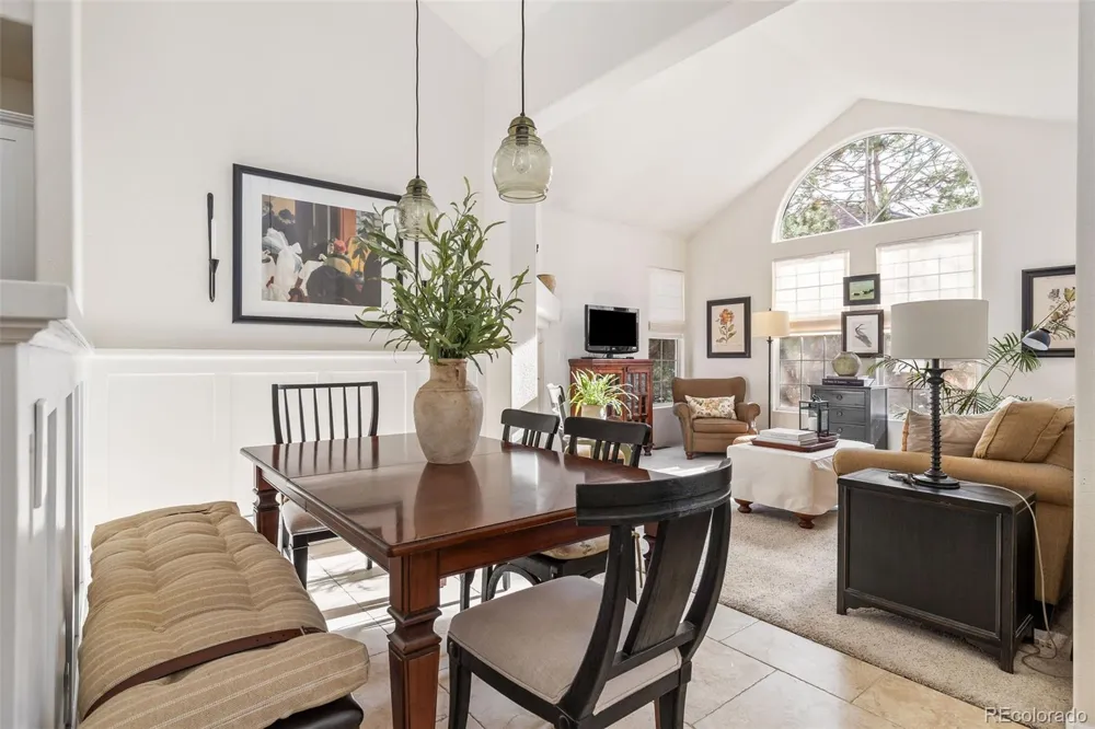 Welcome home to 4035 S Dillon Way, a spacious, move-in-ready condo with all the amenities of modern living! Conveniently located near I-225, Cherry Creek State Park and in the Cherry Creek School District, this two-level condo has been thoughtfully updated with tasteful and timeless designer finishes. Step into the main living area and you'll be greeted with soaring vaulted ceilings, tumbled Italian porcelain tile and tons of natural light! The kitchen has been updated with stainless steel appliances (2017), refaced cabinets and drawers (2017) and lovely travertine backsplash. The adjacent dining area features beautiful Pottery Barn lighting and stylish board and batten paneling. Enjoy cozy evenings at home in the living room with delightful gas fireplace! The primary bedroom with en suite bath features new Restoration Hardware lighting (2025), Italian porcelain tile (2025), large soaking tub, new dual sinks and faucets (2025) and a walk-in closet. The second bathroom was fully updated in 2017 with Restoration Hardware lighting, new pedestal sink, new faucet, new shower tile and Italian Porcelain flooring. Both bedrooms are enhanced with beautiful Pottery Barn drapery (2024). The loft is a spacious and flexible space with tons of natural light and additional storage, which would make a perfect 3rd bedroom, workout studio, office or art studio! With an attached garage, in-unit laundry, tons of storage and updates galore, this beautiful condo is ready for you to move right in! Enjoy peace of mind with newer furnace (2021), water heater (2021), appliances (2017) and a new roof (HOA replaced 2025). With a community pool, nearby walkable trails and playgrounds and proximity to Cherry Creek State Park, there are so many options to play outside! Don't miss this incredible opportunity to own this spacious, beautifully updated condo in Meadow Hills!