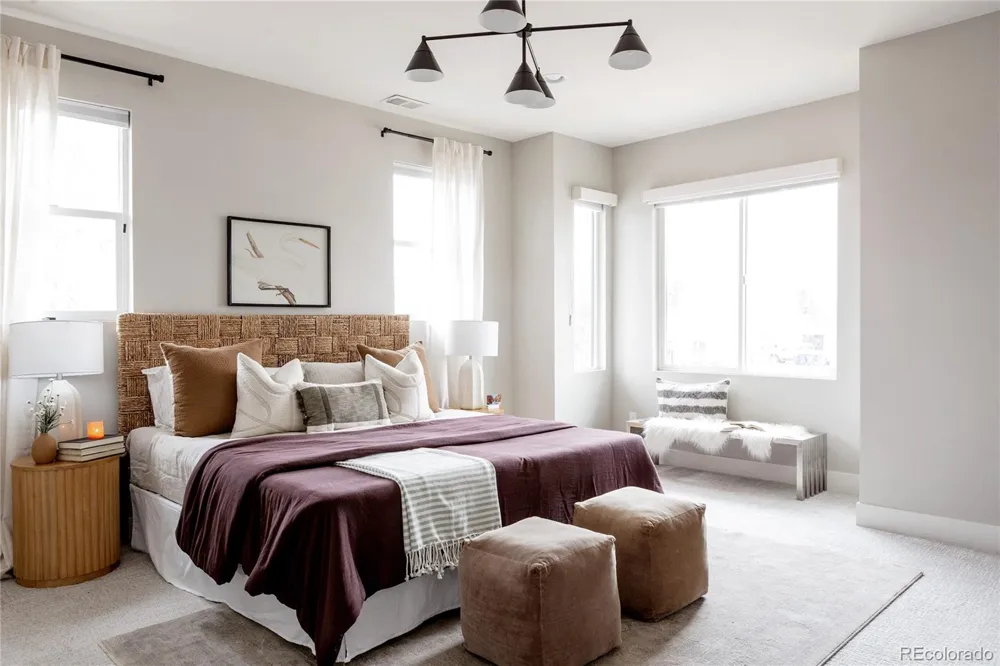 Light, bright, and airy, this south Englewood home offers clean modern style and a layout that truly works for everyday living. The open main level is filled with natural light from oversized windows, with high ceilings and solid wood floors that create a warm, cohesive feel throughout the great room, dining area, and kitchen. A fireplace anchors the living space and adds just the right amount of comfort and character. The kitchen is crisp and contemporary with white quartz countertops, LG stainless steel appliances, and generous prep space, all flowing easily into the main gathering areas for simple entertaining and daily life. One of the standout features is the upper level, with three generous bedrooms on the same floor. The primary suite includes a large walk-in closet by California Closets and a spacious, spa-inspired bath with custom tile and a glass block door. Two additional large bedrooms, a full bath, and upstairs laundry make the layout especially functional and convenient. The fenced backyard offers room for a fire pit, pets, and outdoor dining, with sprinkler systems in both the front and back for easy maintenance. A detached two-car garage with extra-high ceilings provides excellent storage potential. Located near South Broadway, you are moments from local dining, coffee shops, and some of the city’s most fun neighborhood spots, making it easy to enjoy both quiet residential living and Denver’s best urban experiences. Welcome home