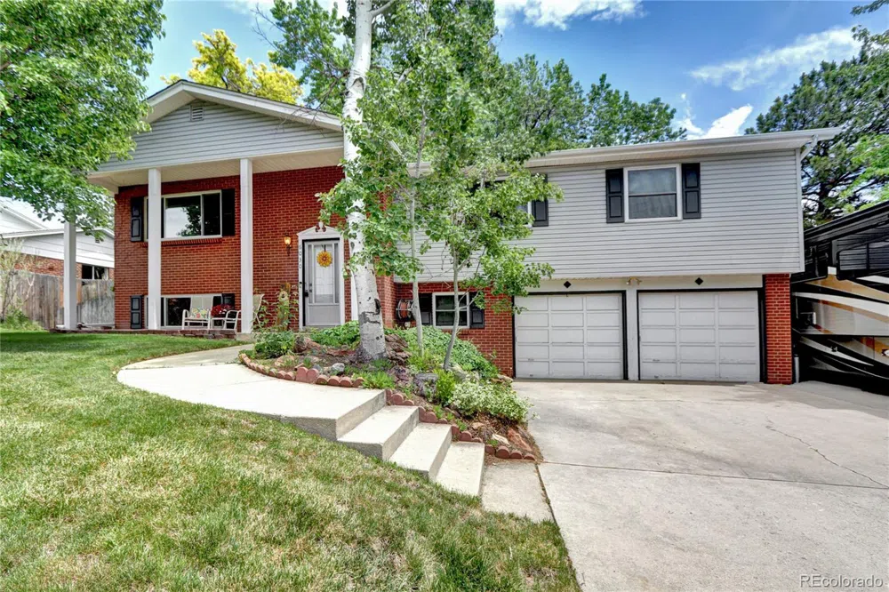 Welcome to Arvada! Nestled in the Meadow Lake Estates neighborhood, this 4-bedroom, 3-bath home has over 2,300 sq ft of living space and has been meticulously cared for by the owners. Hard wood floors run throughout the upper level, with 3 bedrooms, including a primary suite with 3/4 bath, a full bath, spacious living room and dining room, island bar, and adorable country kitchen, which steps out on to a covered, recently replaced composite deck. The lower level consists of a ground level family room with gas fireplace, another bedroom, 3/4 bath and laundry room, utility room/workshop, and walks out to your oversized finished 2 car garage which also has access to the back. Your private back yard oasis is complete a new covered stone patio with LED lighting, a gorgeous water feature, mature trees, as well as a detached 120 sq ft, insulated shop that could be anything from storage, workshop, craft room, or even an office. There is a separate concrete driveway on the side of garage for your RV or toys, complete with 50 amp hook up. Other features include a recently serviced boiler, individual room evaporative cooling, radon mitigation system, as well as central vacuum. This desirable location is blocks from Meadowlake Park, 3.6 miles to Old Town Arvada, 15 miles from Denver, and less than 10 miles to the mountains.