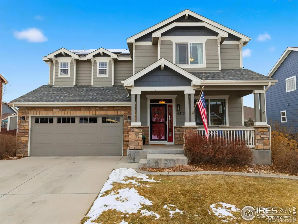 Welcome to this stunning five-bedroom home in Summerfields at Timnath Ranch, one of Northern Colorado's most sought-after communities. A wide-open floor plan sets the tone, filled with natural light, white oak flooring, and elegant crown molding throughout the main level. Gather around the great room fireplace or entertain with ease in the spacious gourmet kitchen, featuring a gas range, double ovens, quartz countertops, abundant cabinetry, and quality finishes throughout. Just off the kitchen, a convenient command center provides extra storage or a semi-private home office. Upstairs, you'll find four bedrooms, including the serene primary suite complete with a five-piece luxury bath and walk-in closet. The finished basement expands your living space even further with a large recreation room with wet bar rough-in, a high-end home gym, and a comfortable guest bedroom. Step outside to enjoy the expansive deck with pergola and outdoor speakers, overlooking a fully landscaped backyard-perfect for relaxing or entertaining. Additional highlights include Tesla solar panels for monthly energy savings, a whole-house humidifier, and an attached two-car garage. Ideally located near the community's resort-style pool, clubhouse, fitness facilities, parks, shopping, dining, and Poudre School District schools. This is a true lifestyle home at an exceptional value.