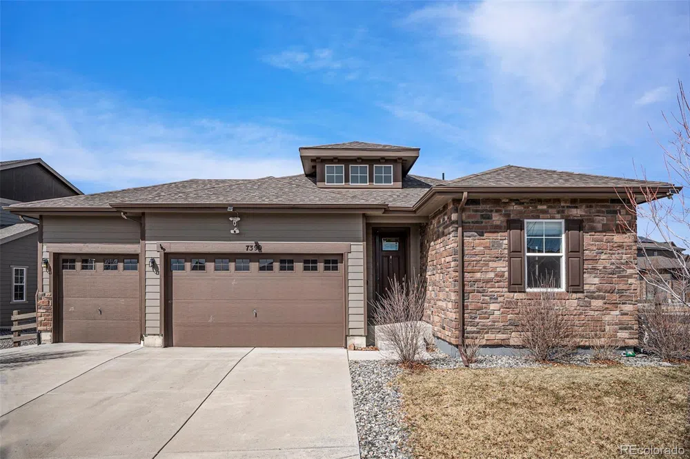 BUYER FELL OUT DUE TO LOAN TERMS* Indulge in the charm of this captivating 3-bedroom, 2-bathroom ranch-style haven, nestled in the dynamic Southshore community. Positioned to face the south, it bathes in natural light, elevating its inviting atmosphere. Stepping inside, the formal entryway sets a tone of bespoke sophistication that resonates throughout. Luxury vinyl flooring graces the home, seamlessly blending durability with elegance. The expansive open floor plan unfolds to reveal a sun-kissed family room, adorned with a cozy gas fireplace, perfect for unwinding. The kitchen, a chef's sanctuary, showcases rich, dark cabinets harmonizing flawlessly with striking granite countertops. Generous cabinet space and a spacious pantry ensure organizational bliss. Conveniently adjacent, the mudroom acts as a seamless transition from kitchen to the spacious 3-car garage. Retreat to the serene master suite, boasting an en-suite bathroom with a lavish walk-in shower. Two additional generously sized bedrooms and another full bathroom cater to family and guests alike. Ascending a custom railing, the full, unfinished basement beckons with boundless potential for personalized customization. Situated on a sprawling 9,000 sq ft corner lot, the expansive covered patio within the fully fenced backyard beckons outdoor living and entertainment. This exquisite abode marries contemporary allure with practical living, presenting an irresistible opportunity in a highly sought-after locale.