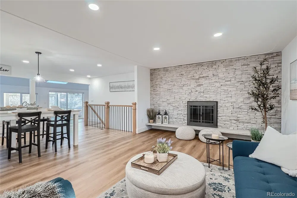 **Seller to give $25,000 to Buyer in the form of Seller’s concessions for the Buyer to use towards closing cost, for a buydown of their loan, or take it off the purchase price.** Welcome to this one-of-a-kind, completely renovated ranch home in the highly desirable Sierra Vista neighborhood. This home truly has it all when it comes to both entertainment and everyday living. Enjoy the spacious open floor plan with a massive chef's kitchen featuring a gorgeous quartz 16ft island with seating for 8, top of the line 8 burner gas range, and an abundance of cabinetry. Not only is the kitchen packed with beauty and high end features but it is also completely open concept to the other living spaces making it the perfect place to host all your family gatherings. Step down from the kitchen into your beautiful dining and family room with large vaulted ceilings including skylights, beautiful large windows and views to your completely private and very large back yard. The main floor also includes a full hall bath, 2 great sized bedrooms, and a primary suite with adjoining bathroom and large shower with beautiful herringbone marble tile. Continue downstairs into a fully-finished and very large (just under 2,000 sqft) basement. The basement includes a beautiful stacked stone fireplace feature wall, wet bar with beverage fridge, and plenty of space to have a table, full couch and seating area. Also included are 2 bathrooms, 2 large bedrooms, and one large bonus room. This bonus room can be used as a home gym, office, kids playroom, movie theatre, or a non-conforming bedroom. Don't forget to check out both laundry areas in the home, one for each level! As you leave the home, look out to the beautiful white farmhouse with fields of flowers and the mountains peeking through.