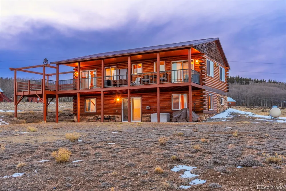 Beautifully maintained cabin in one of the most sought after neighborhoods in Park County. Situated on 4 level acres up a lovely gravel drive, this location has the most impressive mountain views which you can take advantage of from the covered deck that runs the length of the cabin as well as an extended deck. The upper deck is accessible from the primary bedroom on the main level as well as from the dining area. The lower level opens out to a concrete patio to take full advantage of the moderate mountain climate, and the herds of elk and pronghorn which are frequent, year round visitors. The main level has a bright, open great room with a gas log fireplace and gorgeous wood floors, a cozy cabin with modern touches. The large, open kitchen has plenty of cabinet space, and so much counter space. A large kitchen island expands that space even more. Windows all around and sliding glass doors bring the mountain views right in. The primary bedroom and a full bath complete the main level. The lower level has two additional bedrooms and another full bath. In addition, there is a bonus room which is ideal for a home office, gym, playroom, whatever you need. Another living area opens out onto the patio. A large utility room with full laundry adds space and convenience. The cabin has a fresh coat of stain. The Michigan Hill neighborhood is just minutes from Hwy 285 for convenience yet quiet and friendly. Roads are privately maintained so plowing in the winter is no issue, and you are welcome to take your off-road vehicles all around the neighborhood. And, neighborhood association maintains a beautiful, stocked fishing pond for residents. A short drive from Fairplay and just an hour from Denver, this could easily be a full time residence. Or, keep it as your exclusive mountain getaway or even a short term rental.