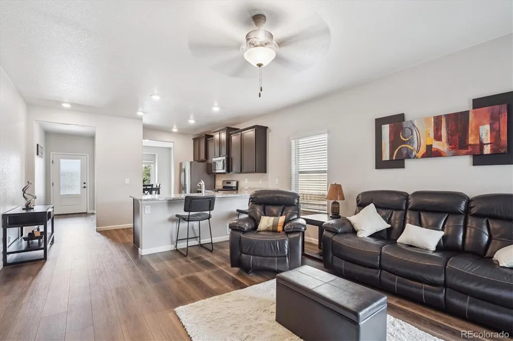 Wonderful ranch-style home nestled in the desirable Second Creek Farm community. Built in 2021, this 3-bedroom, 2-bathroom residence offers effortless one-level living with an open-concept layout that blends comfort and style. The modern kitchen features granite countertops, stainless steel Whirlpool appliances, and a spacious island—perfect for entertaining or everyday living. The primary suite is a peaceful retreat with an en-suite bath, complete with a soaking tub, separate shower, and generous walk-in closet. Enjoy Colorado’s sunny days on the covered patio overlooking the private backyard. Additional highlights include central A/C, a two-car garage, and low-maintenance landscaping. Located just minutes from parks, schools, and major commuter routes, this home offers both convenience and charm. Don’t miss your chance to own this move-in-ready gem!